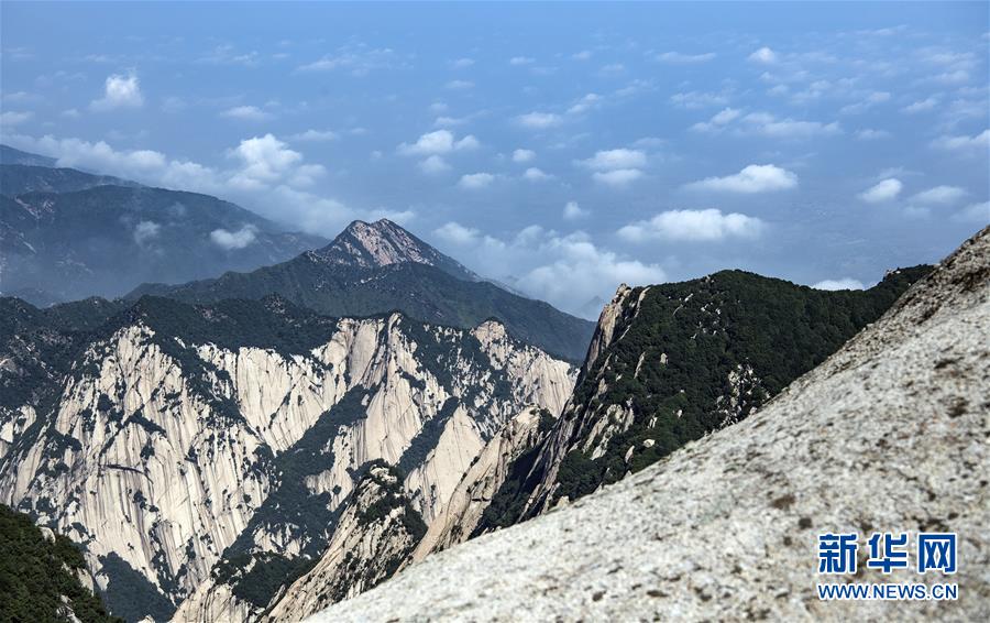6月18日,白云飄動(dòng)下的華山。當(dāng)日,西岳華山經(jīng)歷連續(xù)三天暴雨后,迎來(lái)燦爛的陽(yáng)光。新華社記者 陶明 攝