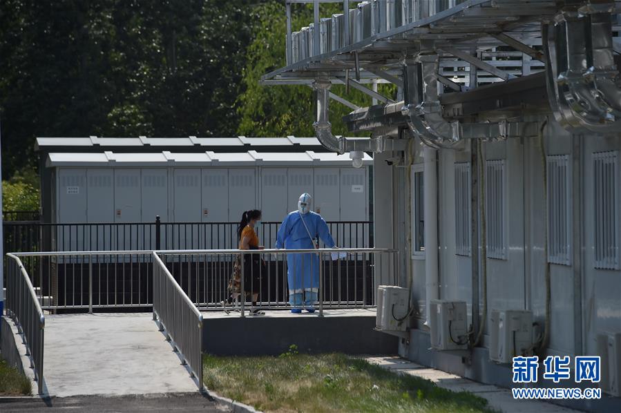 6月19日,在北京地壇醫(yī)院隔離病區(qū)外,一名新收治的病人(左)準(zhǔn)備進(jìn)入隔離病區(qū)。新華社記者彭子洋攝