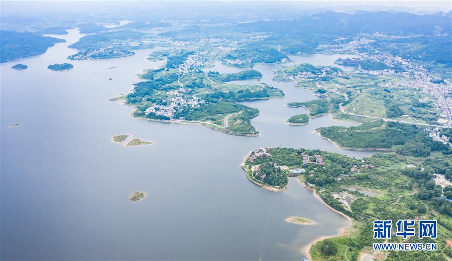 6月21日拍攝的紅楓湖景區(qū)風光(無人機照片)。夏至時節(jié),貴州省清鎮(zhèn)市紅楓湖景區(qū)草木蒼翠,秀麗的湖光山色吸引不少游客前來游玩。新華社記者陶亮攝