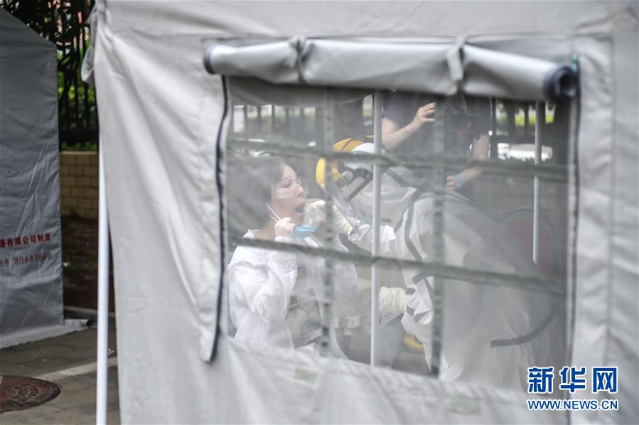 6月15日,在北京市東城區(qū)地壇體育館外的采樣點,市民在進(jìn)行核酸檢測采樣。新華社記者彭子洋攝