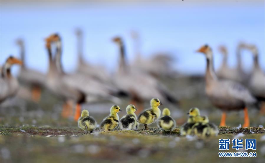 6月9日拍攝的西藏安多縣境內(nèi)嘎龍湖鳥(niǎo)島上的斑頭雁雛鳥(niǎo)。夏季的藏北高原氣候涼爽,生機(jī)盎然。經(jīng)過(guò)一個(gè)冬季在藏南的生活,斑頭雁、紅嘴鷗、黑頸鶴等紛紛遷徙至藏北深處的西藏安多縣嘎龍湖鳥(niǎo)島,在此棲息、產(chǎn)蛋、孵蛋。新華社記者覺(jué)果攝