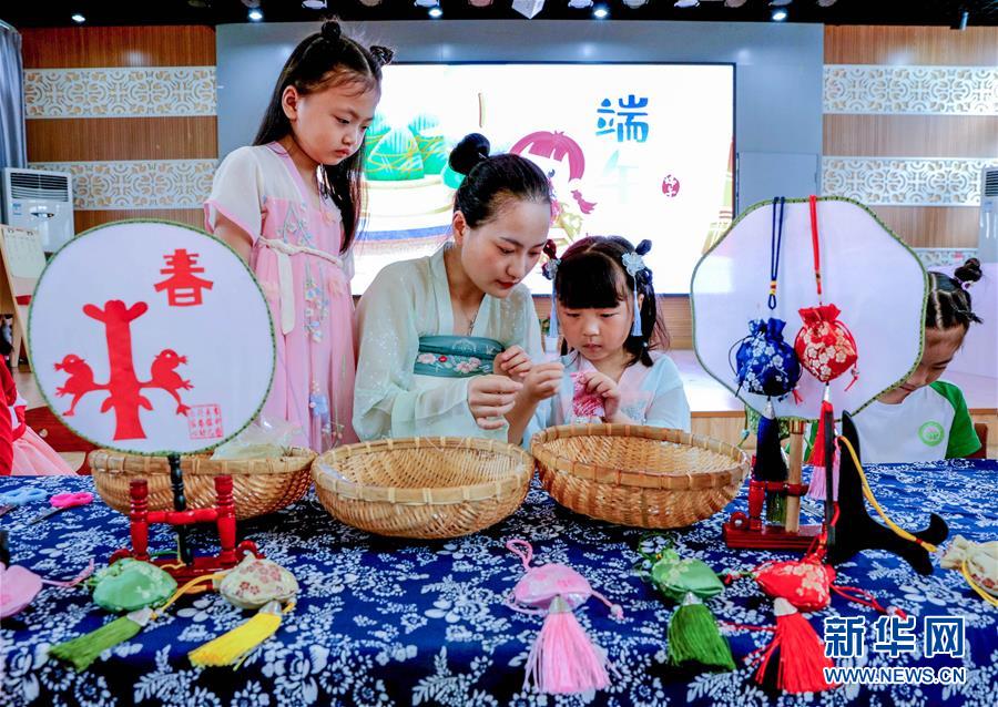 6月23日,長興縣李家巷鎮(zhèn)中心幼兒園的孩子們在老師的帶領(lǐng)下,一起制作端午香囊。為了迎接即將到來的端午節(jié),浙江省湖州市長興縣各個幼兒園開展“品民俗迎端午”主題活動,讓小朋友們體驗(yàn)傳統(tǒng)民俗文化。新華社記者徐昱攝