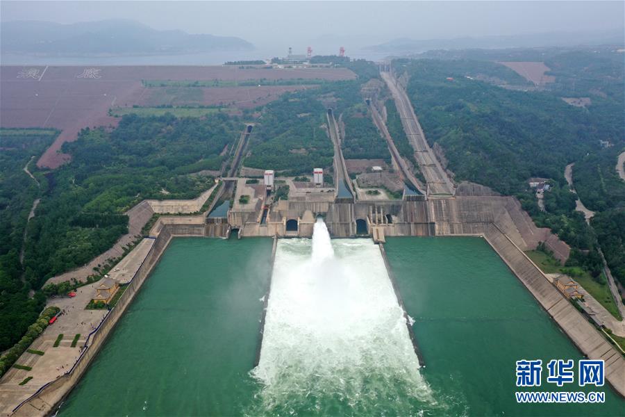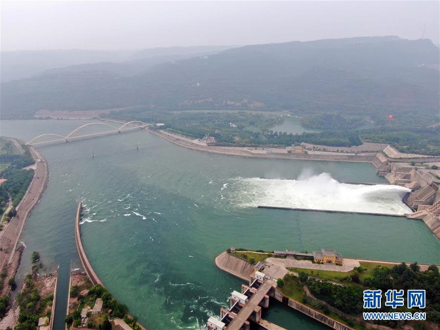 這是6月23日拍攝的黃河小浪底水利樞紐工程(無人機照片)。近日,黃河小浪底水利樞紐工程開啟洪水調(diào)度運用模式,從空中俯瞰,蔚為壯觀。新華社記者郝源攝