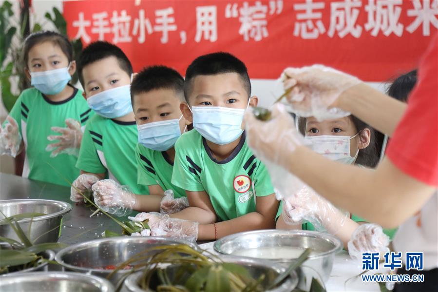 6月24日,在河北省廊坊市安次區(qū)西小街社區(qū)活動(dòng)中心,孩子們學(xué)習(xí)包粽子。端午節(jié)臨近,各地舉行包粽子、做香包、賽龍舟等豐富多彩的民俗文化活動(dòng),迎接傳統(tǒng)佳節(jié)的到來(lái)。新華社記者王曉攝