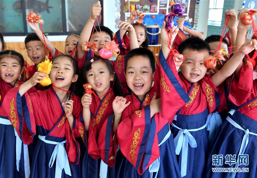 6月24日,西安市航天城第一幼兒園的學(xué)生展示自己制作的香包。端午節(jié)臨近,各地舉行包粽子、做香包、賽龍舟等豐富多彩的民俗文化活動(dòng),迎接傳統(tǒng)佳節(jié)的到來(lái)。新華社記者劉瀟攝