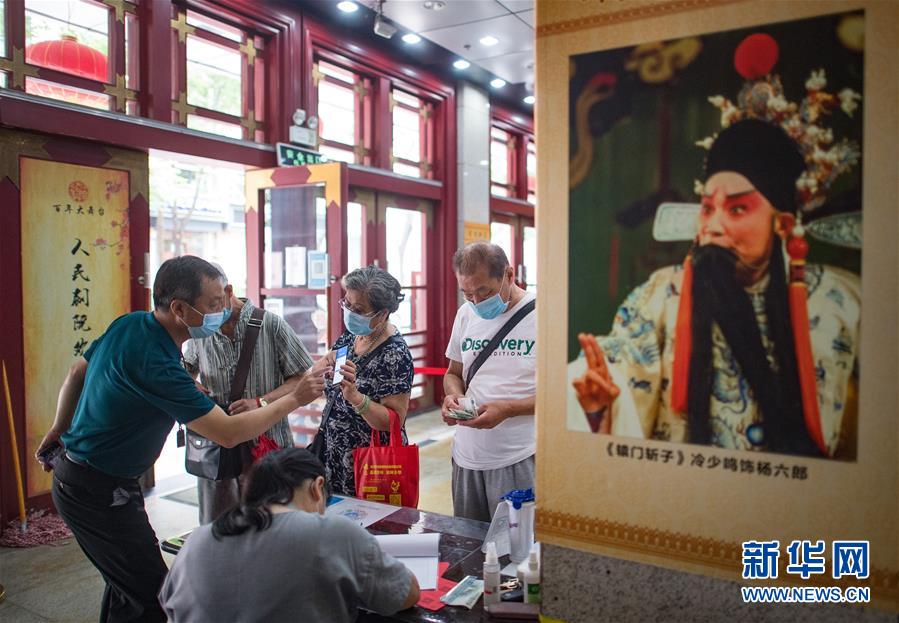 6月26日,市民掃健康碼登記后進(jìn)入武漢市人民劇院。當(dāng)日,武漢市中心7家劇場恢復(fù)開放,各大文藝院團(tuán)恢復(fù)線下演出,市民再次坐在劇場內(nèi)觀看“戲碼頭”上群星云集、百戲薈萃。新華社記者 肖藝九 攝