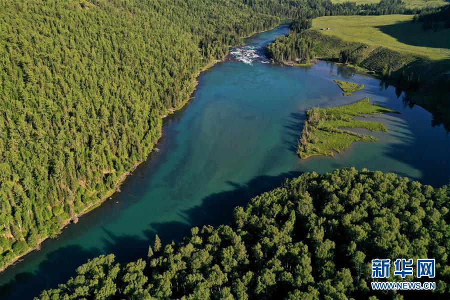 這是6月25日拍攝的新疆喀納斯景區(qū)風(fēng)光(無人機照片)。新華社記者 沙達提 攝