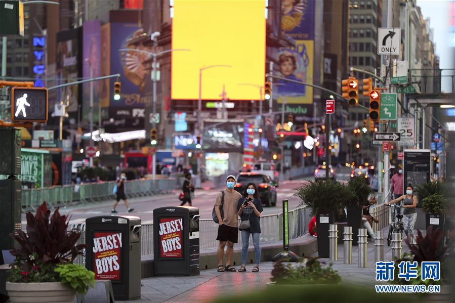 6月27日,人們?cè)诿绹~約時(shí)報(bào)廣場觀光。美國約翰斯·霍普金斯大學(xué)27日發(fā)布的新冠疫情最新統(tǒng)計(jì)數(shù)據(jù)顯示,截至美國東部時(shí)間27日16時(shí)35分(北京時(shí)間28日4時(shí)35分),美國累計(jì)新冠確診病例2500419例,累計(jì)死亡病例125434例。新華社記者王迎攝