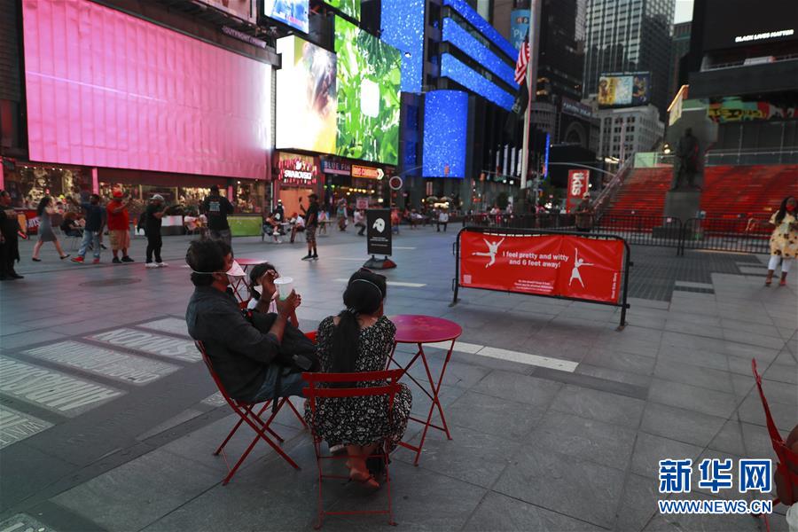6月27日,人們?cè)诿绹~約時(shí)報(bào)廣場的公共休閑區(qū)休息。美國約翰斯·霍普金斯大學(xué)27日發(fā)布的新冠疫情最新統(tǒng)計(jì)數(shù)據(jù)顯示,截至美國東部時(shí)間27日16時(shí)35分(北京時(shí)間28日4時(shí)35分),美國累計(jì)新冠確診病例2500419例,累計(jì)死亡病例125434例。新華社記者王迎攝