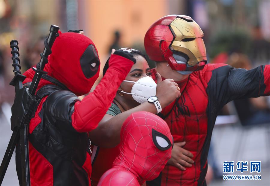 6月27日,在美國紐約時報廣場,一名游客與角色扮演者合影。美國約翰斯·霍普金斯大學(xué)27日發(fā)布的新冠疫情最新統(tǒng)計數(shù)據(jù)顯示,截至美國東部時間27日16時35分(北京時間28日4時35分),美國累計新冠確診病例2500419例,累計死亡病例125434例。新華社記者王迎攝