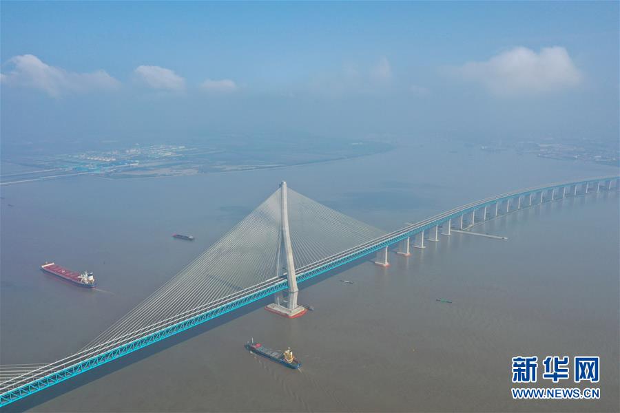 滬蘇通長(zhǎng)江公鐵大橋(6月30日攝,無(wú)人機(jī)照片)。即將于7月1日通車的滬蘇通長(zhǎng)江公鐵大橋北起江蘇南通,南至江蘇張家港,公鐵合建跨江正橋全長(zhǎng)5827米,為集合高速公路、客貨混線鐵路、高速鐵路的“三合一”過(guò)江通道,建成通車后將有效促進(jìn)長(zhǎng)三角城市群跨江融合、協(xié)同發(fā)展。新華社記者季春鵬攝