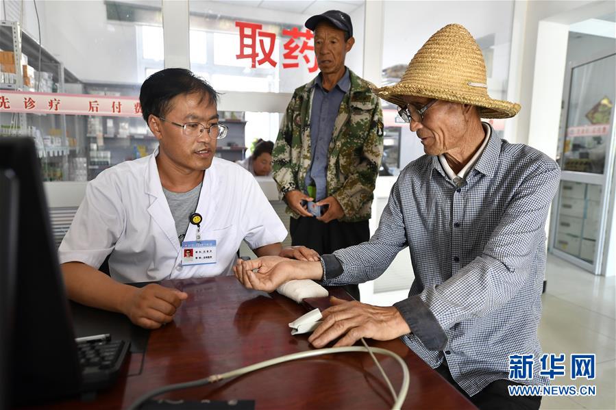 寧夏銀川市永寧縣閩寧鎮(zhèn)原隆村衛(wèi)生室,羅校必(右一)在看?。?019年9月3日攝)。新華社記者王鵬攝