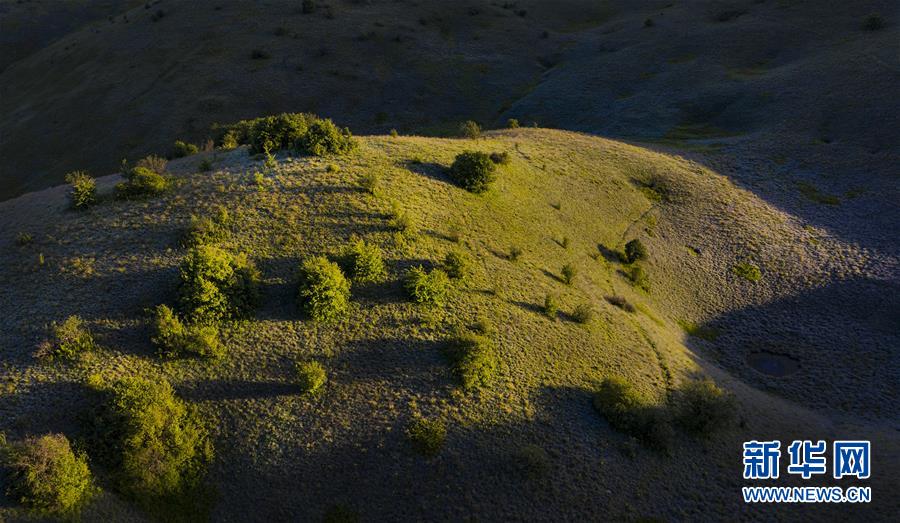 6月30日,朝霞照耀下的神田草甸(無人機照片)。位于陜西省安康市嵐皋縣與重慶市城口縣交界處大巴山神田主脊北坡的神田草甸,面積超過1.1萬畝。夏日的朝霞中,起伏的草甸仿佛一塊寬大無邊的綠色地毯,鑲嵌在大巴山上,如詩如畫。新華社發(fā)(邱仕君攝)