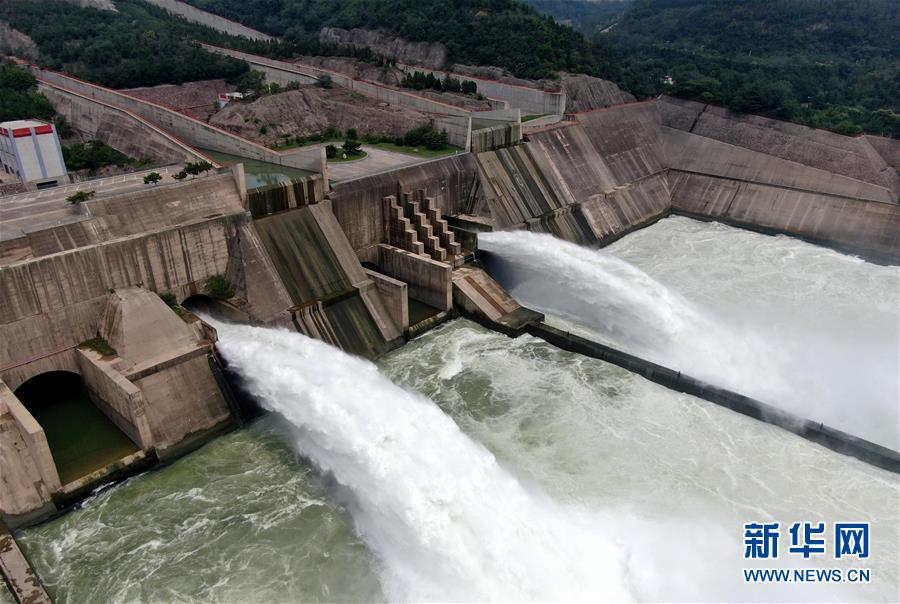 這是7月1日拍攝的黃河小浪底洪水調(diào)度運(yùn)用、水庫(kù)泄洪的場(chǎng)景(無(wú)人機(jī)照片)。新華社記者朱祥攝