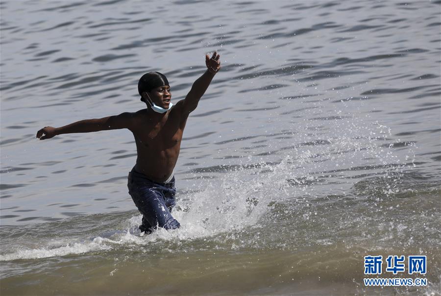 7月1日,一名少年在美國紐約科尼島戲水。當(dāng)日,美國紐約市屬八處海灘正式重新準(zhǔn)許民眾游泳,救生員也同時上崗。新華社記者王迎攝