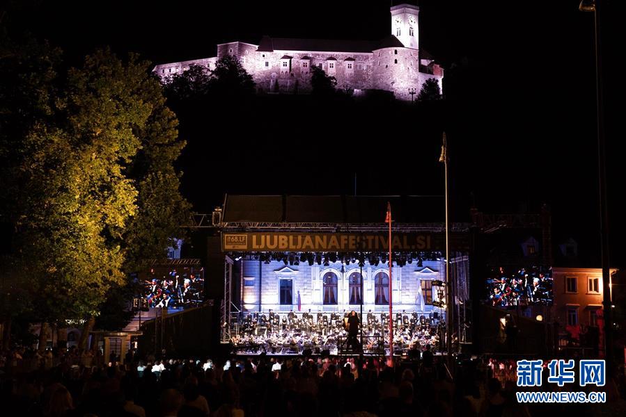 7月1日,樂(lè)手們?cè)谒孤逦哪醽喪锥急R布爾雅那舉行的藝術(shù)節(jié)開(kāi)幕式上演出。當(dāng)日,第68屆盧布爾雅那藝術(shù)節(jié)拉開(kāi)帷幕。新華社記者彭立軍攝