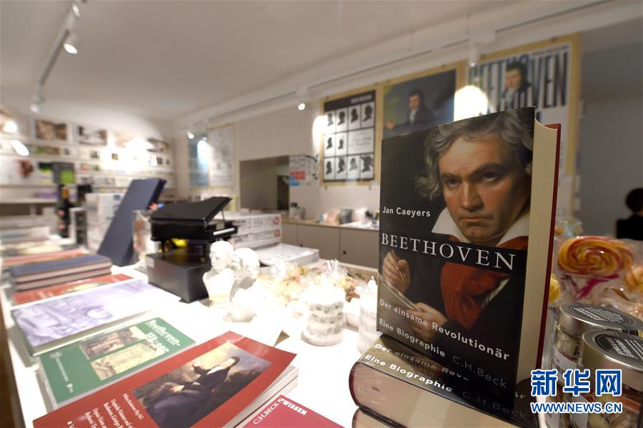 7月2日,奧地利維也納的貝多芬博物館紀(jì)念品商店展示關(guān)于貝多芬的書(shū)籍。因疫情關(guān)閉的奧地利維也納貝多芬博物館7月1日起再次開(kāi)門(mén)迎客。該博物館是貝多芬在維也納的故居之一,貝多芬曾在此長(zhǎng)期居住并創(chuàng)作了部分經(jīng)典的音樂(lè)作品。2020年是貝多芬誕辰250周年。新華社記者 郭晨 攝