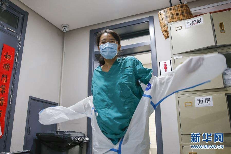 7月3日,中日友好醫(yī)院檢驗科新冠核酸檢測實驗室的檢驗人員閆克芹在進入污染區(qū)前穿戴防護裝備。新華社記者張玉薇攝