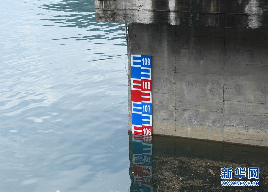 7月6日拍攝的新安江水庫的水位標(biāo)尺。受連續(xù)強(qiáng)降雨影響,位于浙江建德的新安江水庫水位持續(xù)上漲。據(jù)浙江省水利廳發(fā)布的數(shù)據(jù),截至7月6日14時,水庫水位上漲至106.54米,超汛限水位0.04米,且仍在上漲中。為確保水庫防洪安全、合理利用水資源,新安江水庫預(yù)計(jì)于7月7日開啟泄洪閘泄洪。新華社記者翁忻旸攝
