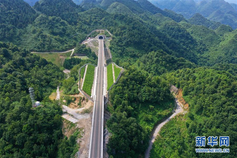 7月6日拍攝的安六鐵路彭家沖一號(hào)大橋附近的景觀(無人機(jī)照片)。當(dāng)日,新建貴州安六鐵路(安順至六盤水)聯(lián)調(diào)聯(lián)試工作進(jìn)入收尾階段,開通前的各項(xiàng)準(zhǔn)備工作已基本就緒。安六鐵路線路全長(zhǎng)約125公里,設(shè)計(jì)時(shí)速250公里,為國(guó)家I級(jí)雙線客運(yùn)專線。建成投用后,貴陽(yáng)至六盤水的鐵路旅行時(shí)間可從現(xiàn)在的3.5小時(shí)縮短為1小時(shí)左右,貴州省六盤水市將全面接入全國(guó)高鐵網(wǎng)。新華社記者劉續(xù)攝