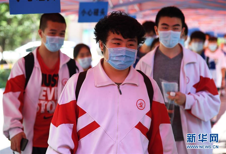 7月7日,在北京大學附屬中學考點,考生結(jié)束第一場考試后走出考場。當日,2020年高考拉開帷幕。新華社記者任超攝