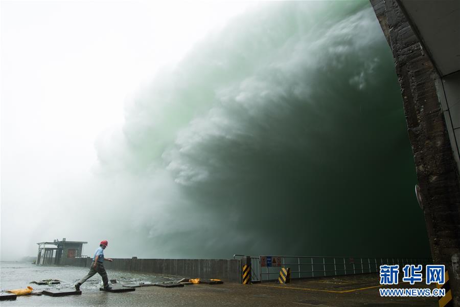 7月7日,新安江電廠工作人員從開(kāi)啟7孔泄洪的新安江水庫(kù)壩底經(jīng)過(guò)。受持續(xù)降水影響,浙江新安江水庫(kù)水位持續(xù)快速上升。繼當(dāng)日10時(shí)開(kāi)啟3孔、12時(shí)開(kāi)啟5孔泄洪后,新安江水庫(kù)于16時(shí)增加到7孔泄洪。新安江水庫(kù)是華東地區(qū)最大的水庫(kù),在錢塘江流域的防洪度汛中起到關(guān)鍵作用。新華社記者翁忻旸攝