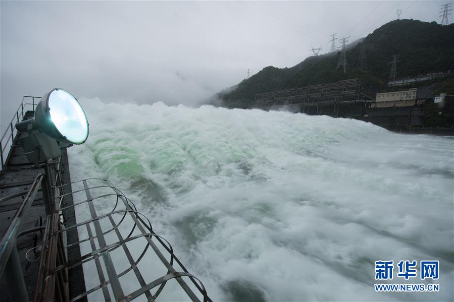 7月7日下午開啟7孔泄洪的新安江水庫(手機(jī)全景模式拍攝)。受持續(xù)降水影響,浙江新安江水庫水位持續(xù)快速上升。繼當(dāng)日10時(shí)開啟3孔、12時(shí)開啟5孔泄洪后,新安江水庫于16時(shí)增加到7孔泄洪。新安江水庫是華東地區(qū)最大的水庫,在錢塘江流域的防洪度汛中起到關(guān)鍵作用。新華社記者翁忻旸攝