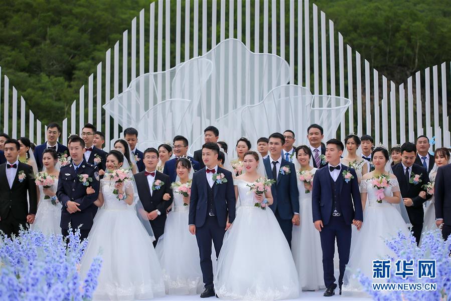 當(dāng)日,吉林省長白山管委會舉行“致敬最美逆行者”大型集體婚禮,50對來自全國各地因參加抗擊疫情工作而推遲婚期的新人參加。