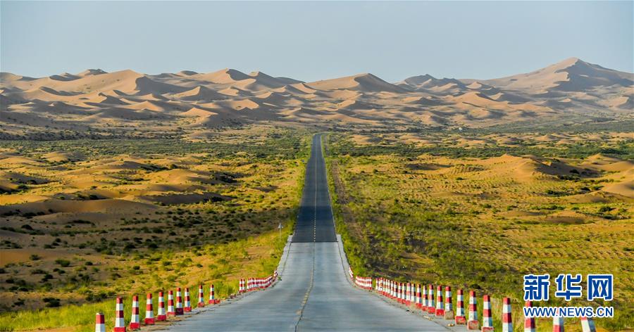 這是7月8日拍攝的騰格里沙漠風(fēng)光。位于內(nèi)蒙古自治區(qū)阿拉善左旗西南部和甘肅省中部邊境的騰格里沙漠是我國(guó)第四大沙漠,總面積約為4.3萬(wàn)平方公里。夏日傍晚,騰格里沙漠連綿的沙丘被日光勾勒出美麗的線條,美不勝收。新華社記者連振攝