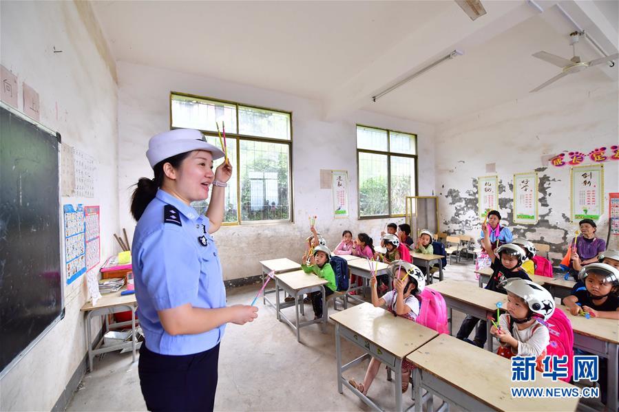 7月11日,柳州市交警支隊(duì)民警給小朋友們上交通安全知識(shí)課。當(dāng)日,廣西柳州市交警支隊(duì)的民警來到融水苗族自治縣大浪鎮(zhèn)大新村紅鄧屯教學(xué)點(diǎn),開展暑期交通安全教育活動(dòng),增強(qiáng)孩子們的安全出行意識(shí)。新華社記者黃孝邦攝