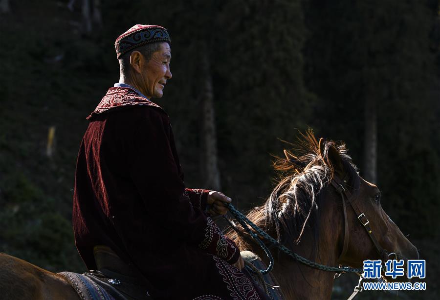 在新疆伊犁特克斯縣境內(nèi)的夏牧場(chǎng)里,一位牧民在放牧(6月30日攝)。新華社記者 王菲 攝