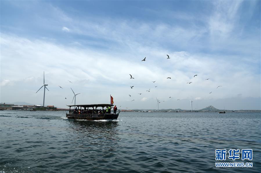 7月17日,游客乘坐觀光船參觀榮成桑溝灣泓泰國家級海洋牧場。近年來,山東省榮成市重點發(fā)展特色海洋旅游產(chǎn)業(yè),打造眾多國家級海洋牧場,保留修復傳統(tǒng)海草民居,吸引游客前來觀光體驗。如今特色海洋旅游已逐漸成為榮成經(jīng)濟發(fā)展新的增長點。新華社記者王凱攝