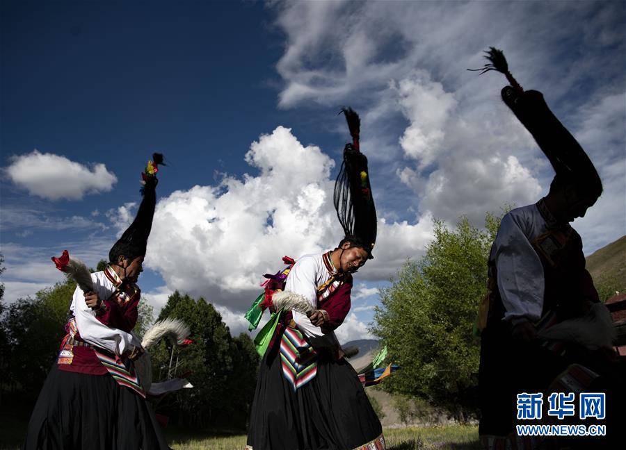 尼瑪老人的弟子們在表演“久河卓舞”(7月1日攝)。新華社記者普布扎西攝