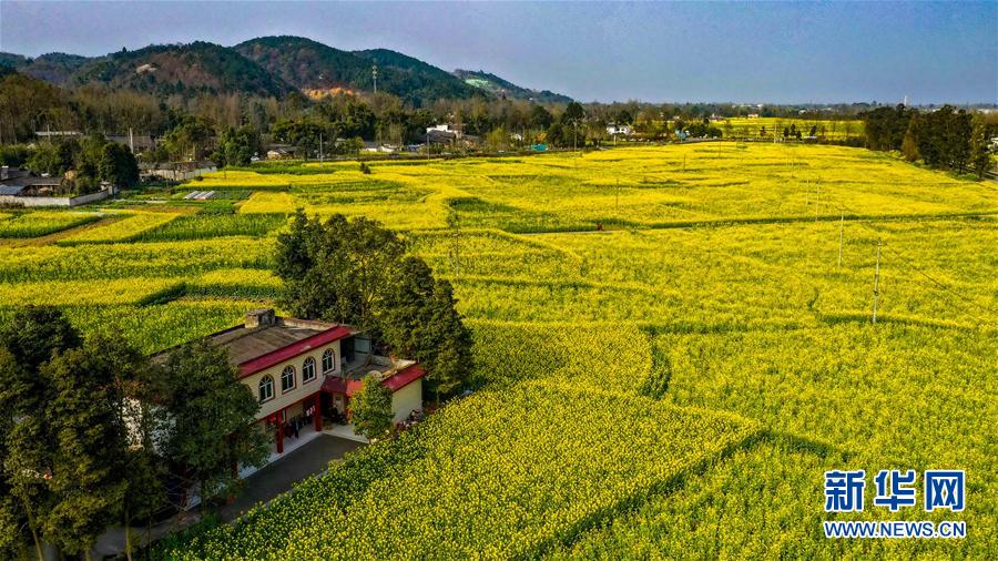 這是2月25日在四川省崇州市重慶路拍攝的油菜花田(無(wú)人機(jī)照片)。新華社記者王曦?cái)z
