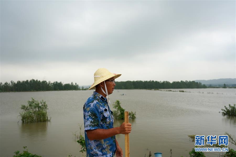 劉良武在江洲鎮(zhèn)的長江堤壩上巡查(7月19日攝)。新華社記者周密攝