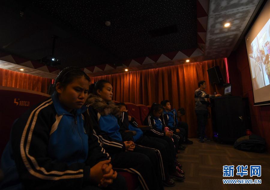 2019年12月3日,視障孩子在聽(tīng)蘇日娜解說(shuō)電影。當(dāng)日,家住內(nèi)蒙古呼和浩特市的蘇日娜來(lái)到內(nèi)蒙古圖書館內(nèi)的殘障人圖書館,為視障人士舉辦詩(shī)歌朗誦會(huì)并解說(shuō)電影。新華社記者彭源攝
