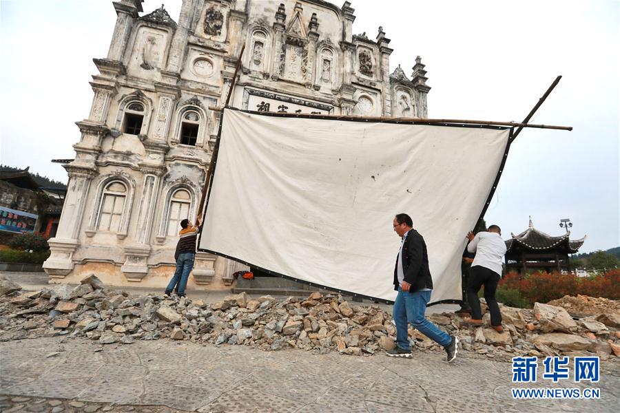 2019年3月19日,在天柱縣坌處鎮(zhèn)三門塘村,黃宜?。ㄖ校┰诖罱娪安シ拍徊?。侗族青年黃宜印是貴州省黔東南苗族侗族自治州天柱縣的一名公益電影放映員。從2014年起,他常年行走在大山里,為山區(qū)群眾播放電影。僅2018年,黃宜印就在天柱縣的37個(gè)村寨播放電影444場(chǎng)。新華社記者歐東衢攝