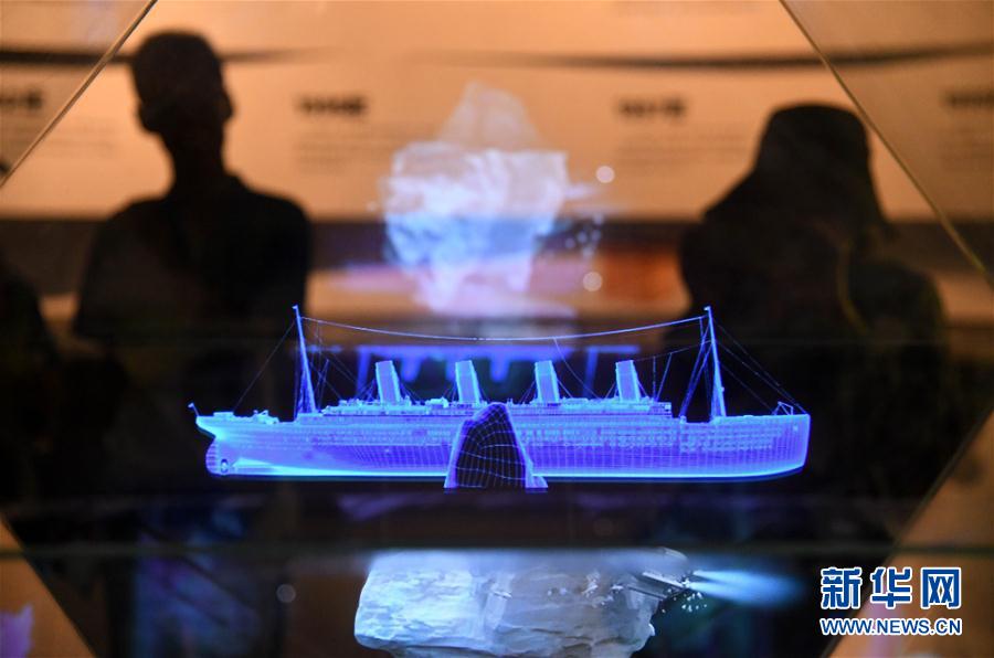 2019年8月28日,參觀者在電影博物館內(nèi)觀看“泰坦尼克號(hào)”數(shù)字模型全息演示。當(dāng)日,2019青島國(guó)際影視博覽會(huì)舉行青島電影博物館探館活動(dòng)。新華社記者李紫恒攝