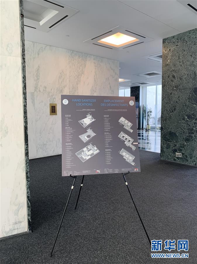 7月20日,在位于紐約的聯(lián)合國總部,秘書處大樓入口附近豎立著一塊標(biāo)明消毒液擺放點(diǎn)的指示牌。受新冠疫情影響而實(shí)行遠(yuǎn)程辦公4個(gè)多月的紐約聯(lián)合國總部20日進(jìn)入重啟第一階段。按規(guī)定,該階段每天進(jìn)入總部大樓人數(shù)不能超過400人。新華社記者王建剛攝