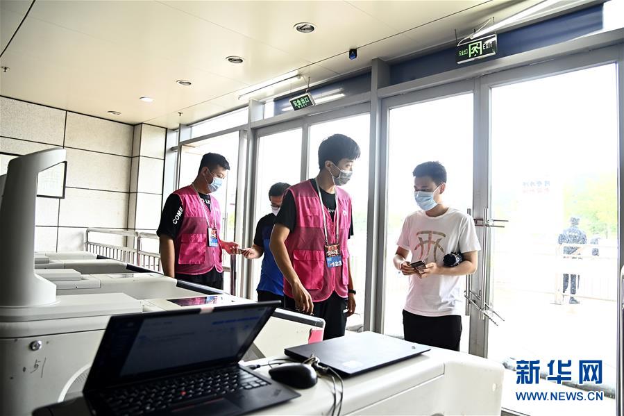 7月26日,在青島國信體育館,蘇柯帆(右)正在進(jìn)場。他成為CBA聯(lián)賽允許觀眾現(xiàn)場觀賽后,首位進(jìn)場的觀眾。當(dāng)日,在山東青島舉行的2019-2020賽季中國男子籃球職業(yè)聯(lián)賽(CBA)復(fù)賽第二階段(嶗山賽區(qū))比賽中,醫(yī)護(hù)人員、教師、公安戰(zhàn)線人士通過官方購票平臺(tái),完成包括核酸檢測在內(nèi)的相關(guān)流程后進(jìn)場觀看了上海久事隊(duì)迎戰(zhàn)山東西王隊(duì)的比賽。觀賽期間,觀賽者須全程佩戴口罩,對號入座,嚴(yán)格保持間隔一米就座。退場時(shí),觀眾須按照自后向前、先兩邊后中間的順序,保持“一米線”社交距離有序退場。新華社記者 郭緒雷 攝