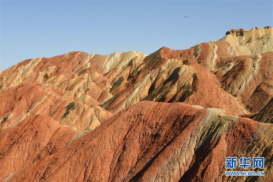 盛夏時節(jié),地處甘肅省張掖市的張掖世界地質(zhì)公園迎來最美季節(jié)。張掖世界地質(zhì)公園最顯著的特征是有由色彩斑斕的褶皺泥巖和砂巖組成的彩色丘陵,同時還擁有自然侵蝕在山體上形成的“窗欞狀”“宮殿式”丹霞地貌和古代洋殼殘余九個泉蛇綠巖套。