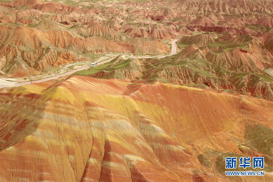 這是7月27日拍攝的張掖世界地質(zhì)公園七彩丹霞景區(qū)景觀(無人機照片)。新華社記者 范培珅 攝