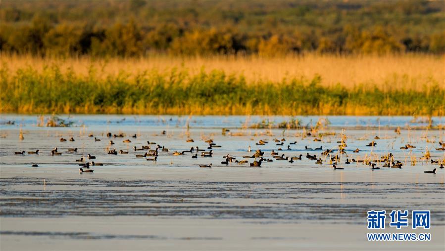 7月28日,成群候鳥在桃力廟—阿拉善灣海子覓食。鄂爾多斯?jié)竦匚挥趲觳箭R沙漠、毛烏素沙地接壤地帶,2002年被列入國際重要濕地名錄。從2006年開始,由于濕地湖面萎縮、湖心島消失,在此筑巢繁殖的世界瀕危物種遺鷗幾近消失。近年來,當(dāng)?shù)夭扇《喾N治理措施,濕地生態(tài)環(huán)境逐步好轉(zhuǎn)。2019年起,濕地內(nèi)的桃力廟—阿拉善灣海子迎來遺鷗大規(guī)?!盎貧w”。如今,40多種鳥類在此棲息,鄂爾多斯?jié)竦刂匦鲁蔀轼B類的樂園。新華社記者連振攝