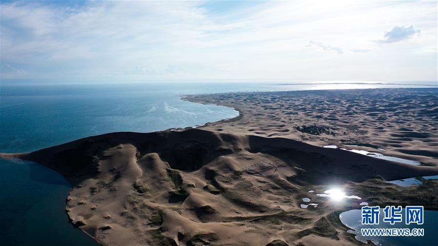 這是青海湖沙島一角(7月28日攝)。盛夏傍晚,位于青海湖東北部的沙島,島內(nèi)湖泊星羅棋布,沙丘連綿起伏,風(fēng)景別致。金沙與湖水掩映,在陽(yáng)光的勾勒下形成一幅美麗的畫(huà)卷。新華社記者張宏祥攝