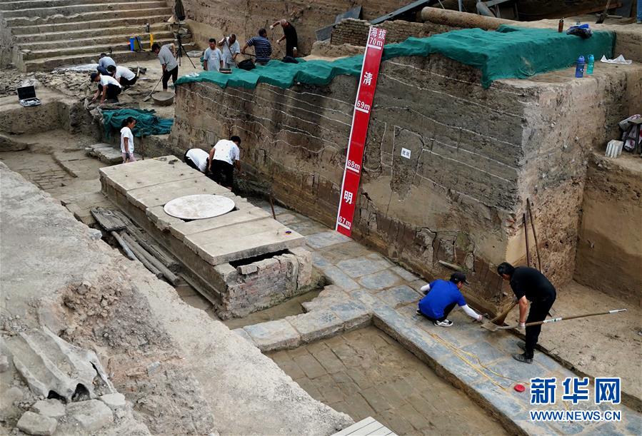 工作人員在河南省開封市州橋及附近汴河遺址進(jìn)行清理發(fā)掘(7月27日攝)。新華社記者李安攝