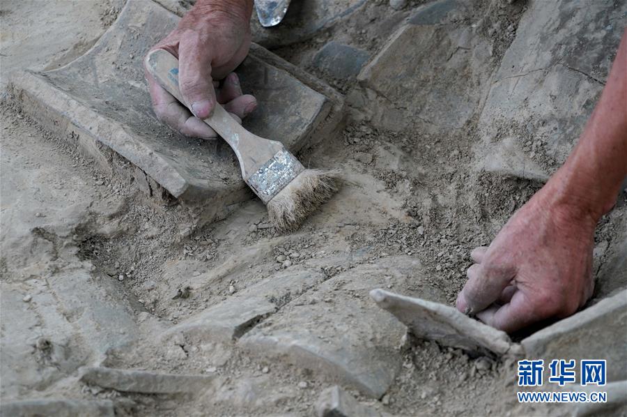 工作人員在河南省開(kāi)封市州橋橋面進(jìn)行清理發(fā)掘(7月27日攝)。新華社記者李安攝