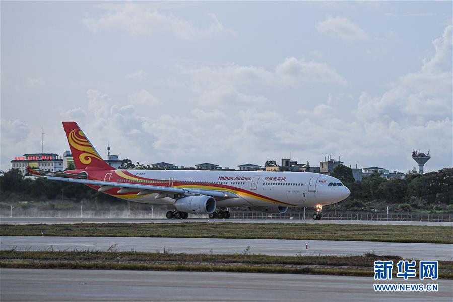 這是7月30日在海口美蘭國(guó)際機(jī)場(chǎng)二期擴(kuò)建項(xiàng)目拍攝的試飛現(xiàn)場(chǎng)。新華社記者蒲曉旭攝