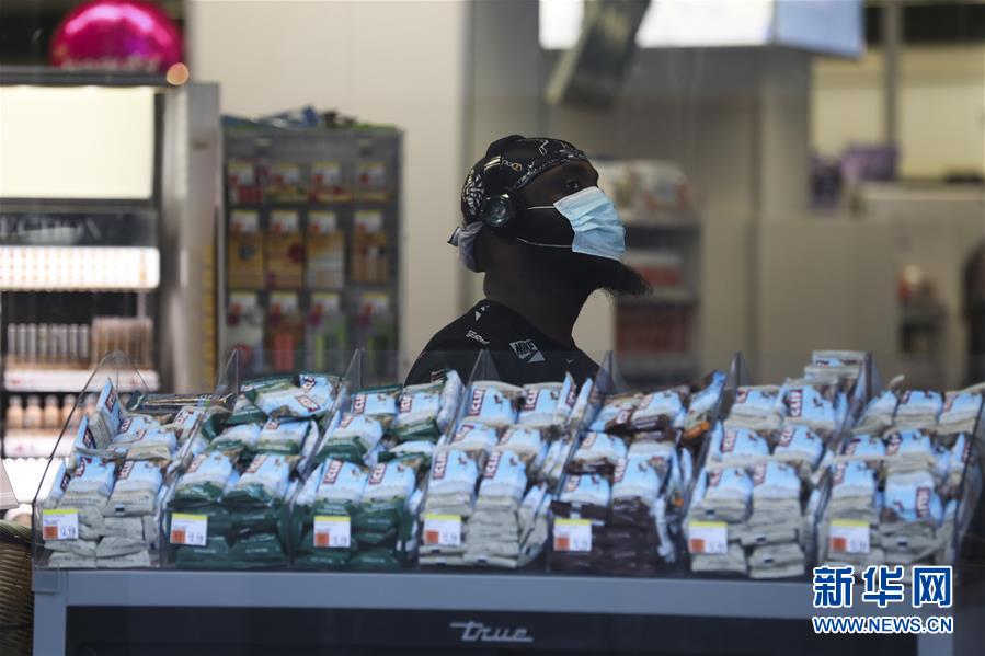 7月29日,在美國紐約,一名男子在超市內(nèi)等待結(jié)賬。美國約翰斯·霍普金斯大學(xué)實時統(tǒng)計數(shù)據(jù)顯示,截至29日,美國累計新冠確診病例已超過440萬例,累計死亡病例超過15萬例。新華社記者王迎攝