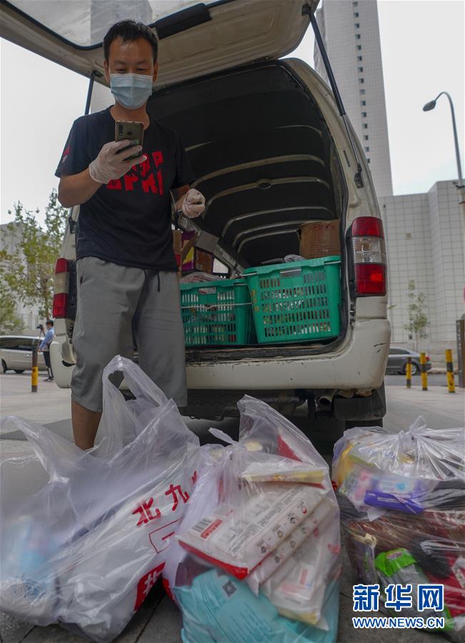 7月30日,在烏魯木齊經(jīng)濟(jì)技術(shù)開發(fā)區(qū)(頭屯河區(qū))萬達(dá)華府小區(qū),商販打電話告知住戶訂購的商品已經(jīng)送達(dá)。新華社記者趙戈攝