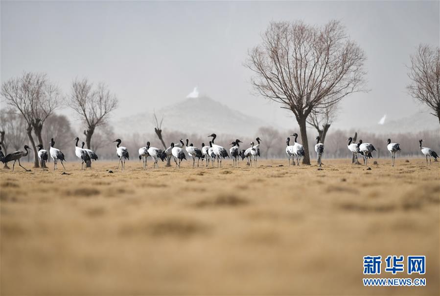 西藏山南市境內(nèi)雅魯藏布江北岸的黑頸鶴(3月11日攝)。新華社記者晉美多吉攝